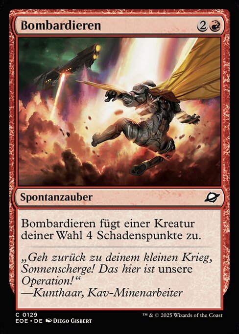 | Rules | Bombard deals 4 damage to target creature. |