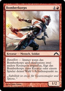 | Rules | Battalion — Whenever Bomber Corps and at least two other creatures attack, Bomber Corps deals 1 damage to any target. |