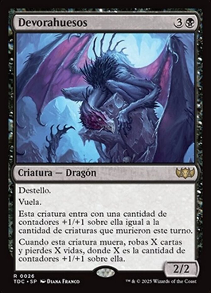 | Rules | Flash Flying This creature enters with a number of +1/+1 counters on it equal to the number of creatures that died this turn. When this creature dies, you draw X cards and you lose X life, where X is the number of +1/+1 counters on it. |