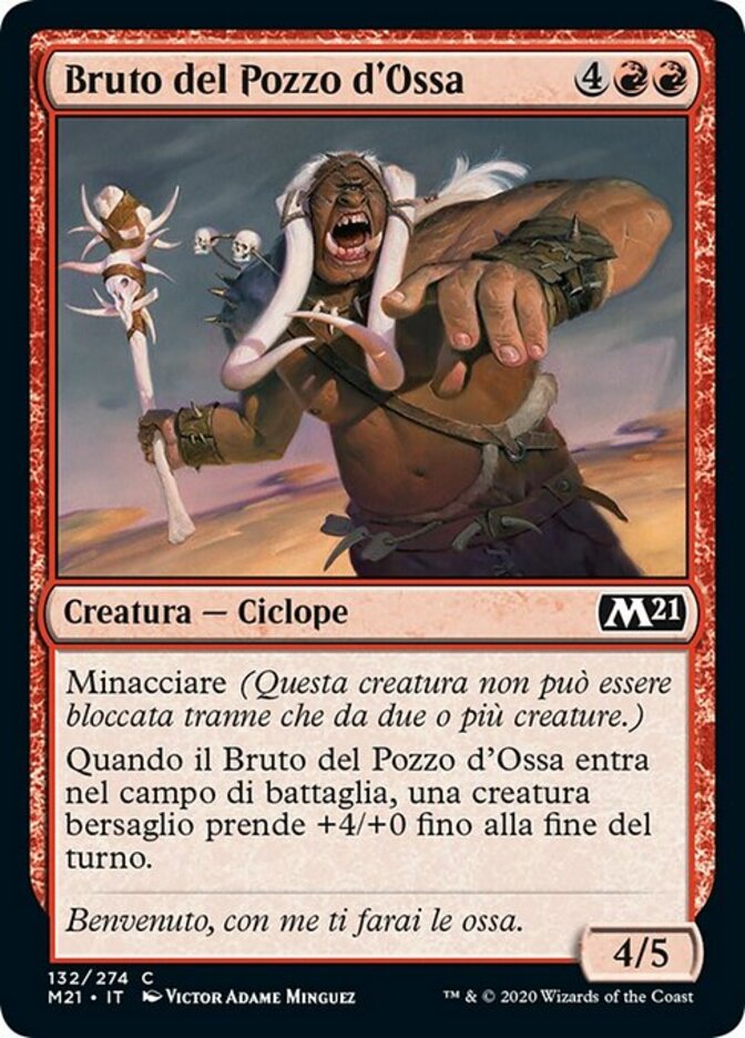 | Rules | Menace (This creature can't be blocked except by two or more creatures.) When Bone Pit Brute enters the battlefield, target creature gets +4/+0 until end of turn. |