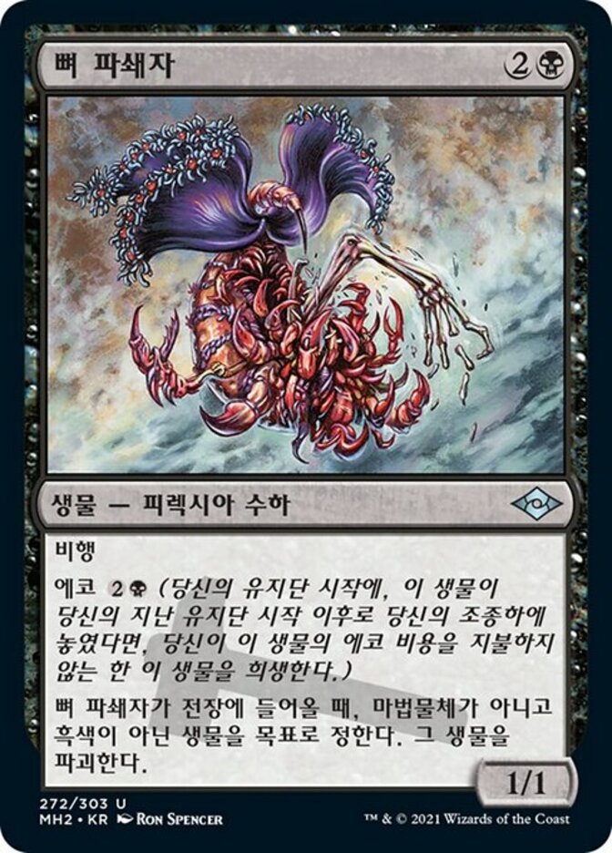 | Rules | Flying Echo (At the beginning of your upkeep, if this came under your control since the beginning of your last upkeep, sacrifice it unless you pay its echo cost.) When Bone Shredder enters the battlefield, destroy target nonartifact, nonblack creature. |
