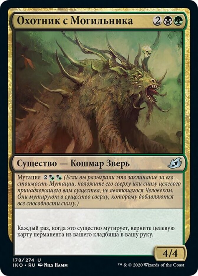 | Rules | Mutate (If you cast this spell for its mutate cost, put it over or under target non-Human creature you own. They mutate into the creature on top plus all abilities from under it.) Whenever this creature mutates, return target permanent card from your graveyard to your hand. |