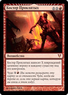 | Rules | Bonfire of the Damned deals X damage to target player or planeswalker and each creature that player or that planeswalker's controller controls. Miracle (You may cast this card for its miracle cost when you draw it if it's the first card you drew this turn.) |