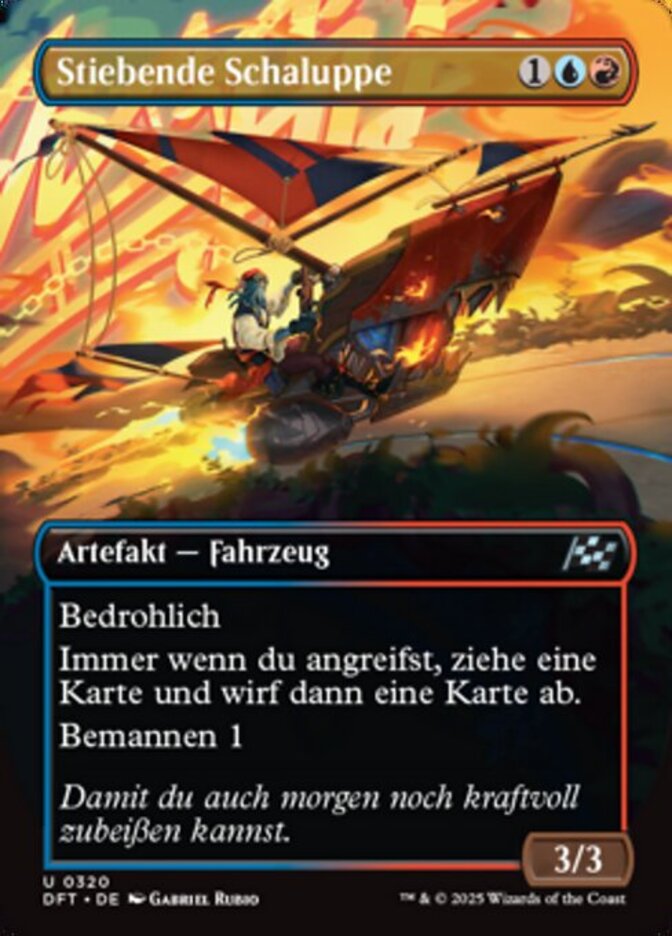 | Rules | Menace Whenever you attack, draw a card, then discard a card. Crew 1 (Tap any number of creatures you control with total power 1 or more: This Vehicle becomes an artifact creature until end of turn.) |