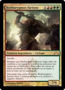 | Rules | Trample Whenever Borborygmos Enraged deals combat damage to a player, reveal the top three cards of your library. Put all land cards revealed this way into your hand and the rest into your graveyard. Discard a land card: Borborygmos Enraged deals 3 damage to any target. |