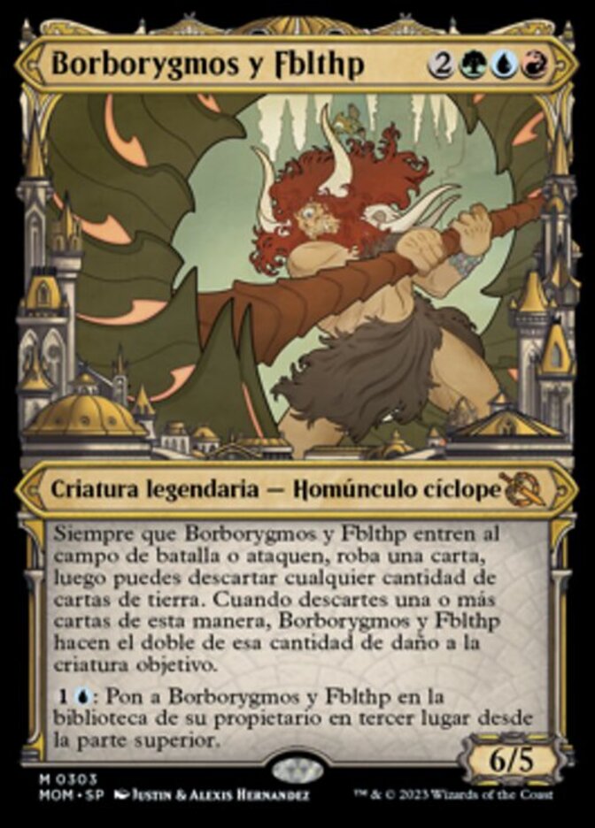 | Rules | Whenever Borborygmos and Fblthp enters the battlefield or attacks, draw a card, then you may discard any number of land cards. When you discard one or more cards this way, Borborygmos and Fblthp deals twice that much damage to target creature. : Put Borborygmos and Fblthp into its owner's library third from the top. |
