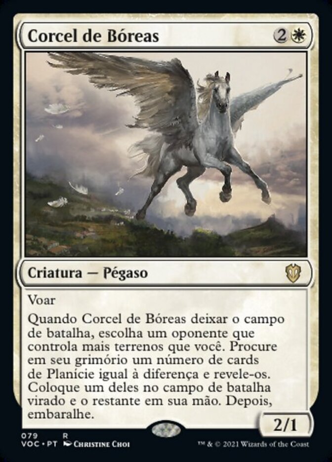 | Rules | Flying When Boreas Charger leaves the battlefield, choose an opponent who controls more lands than you. Search your library for a number of Plains cards equal to the difference, reveal those cards, put one of them onto the battlefield tapped and the rest into your hand, then shuffle. |