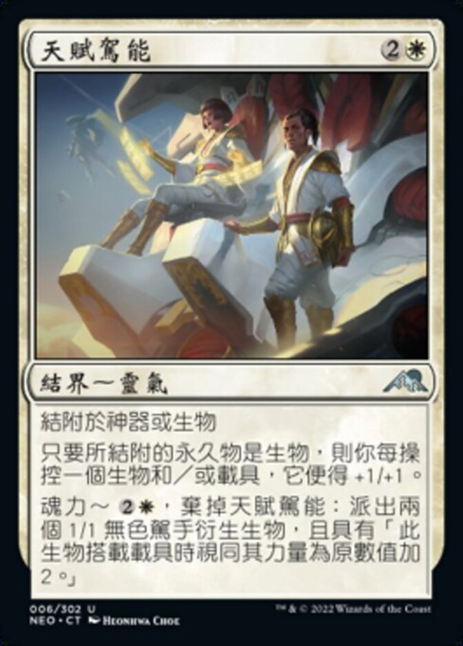 | Rules | Enchant artifact or creature As long as enchanted permanent is a creature, it gets +1/+1 for each creature and/or Vehicle you control. Channel — , Discard Born to Drive: Create two 1/1 colorless Pilot creature tokens with "This creature crews Vehicles as though its power were 2 greater." |