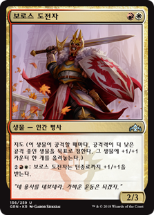 | Rules | Mentor (Whenever this creature attacks, put a +1/+1 counter on target attacking creature with lesser power.) : Boros Challenger gets +1/+1 until end of turn. |
