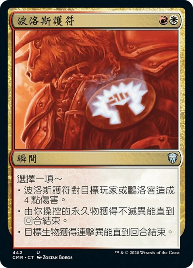 | Rules | Choose one — • Boros Charm deals 4 damage to target player or planeswalker. • Permanents you control gain indestructible until end of turn. • Target creature gains double strike until end of turn. |
