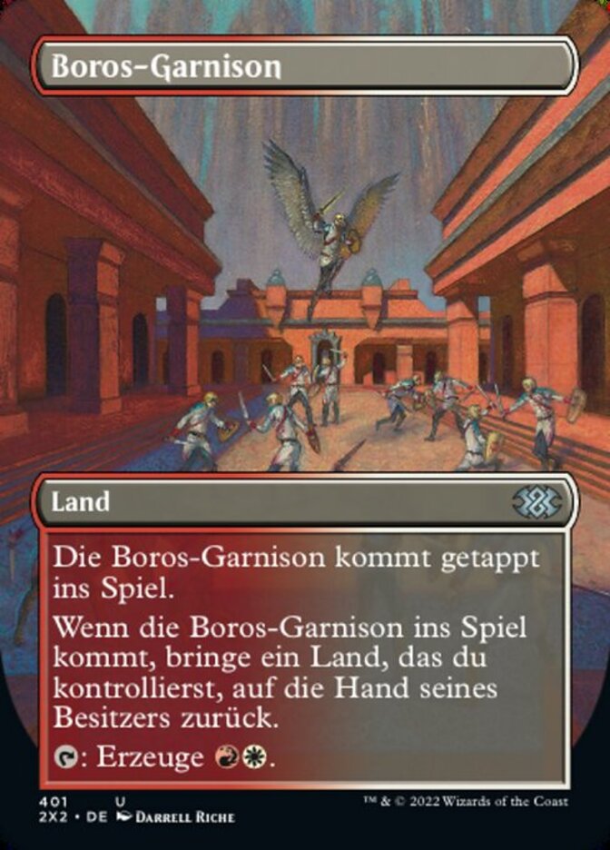 | Rules | Boros Garrison enters the battlefield tapped. When Boros Garrison enters the battlefield, return a land you control to its owner's hand. : Add . |