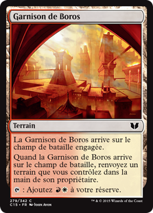 | Rules | Boros Garrison enters the battlefield tapped. When Boros Garrison enters the battlefield, return a land you control to its owner's hand. : Add . |