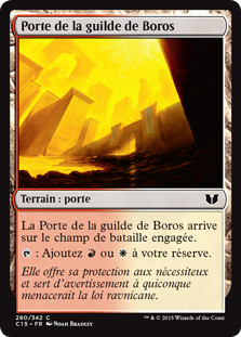 | Rules | Boros Guildgate enters the battlefield tapped. : Add or . |