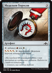 | Rules | : Add or . , , Sacrifice Boros Locket: Draw two cards. |