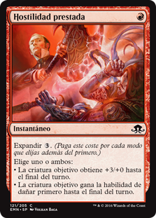 | Rules | Escalate (Pay this cost for each mode chosen beyond the first.) Choose one or both — • Target creature gets +3/+0 until end of turn. • Target creature gains first strike until end of turn. |