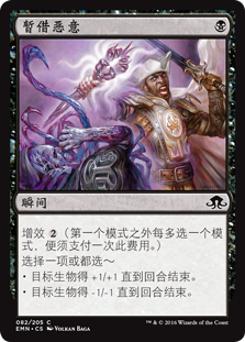 | Rules | Escalate (Pay this cost for each mode chosen beyond the first.) Choose one or both — • Target creature gets +1/+1 until end of turn. • Target creature gets -1/-1 until end of turn. |