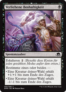 | Rules | Escalate (Pay this cost for each mode chosen beyond the first.) Choose one or both — • Target creature gets +1/+1 until end of turn. • Target creature gets -1/-1 until end of turn. |