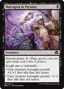 | Rules | Escalate (Pay this cost for each mode chosen beyond the first.) Choose one or both — • Target creature gets +1/+1 until end of turn. • Target creature gets -1/-1 until end of turn. |