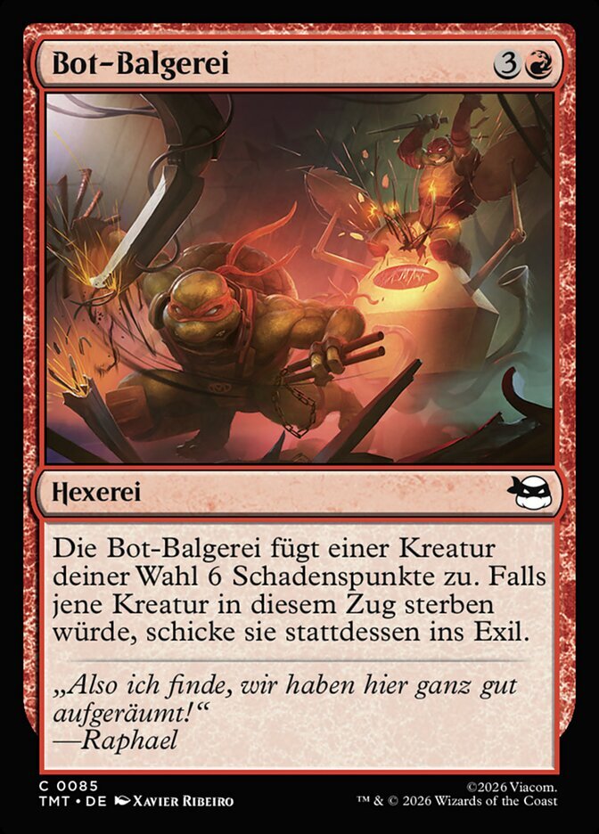 | Rules | Bot Bashing Time deals 6 damage to target creature. If that creature would die this turn, exile it instead. |