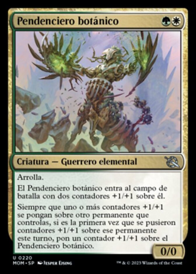 | Rules | Trample Botanical Brawler enters the battlefield with two +1/+1 counters on it. Whenever one or more +1/+1 counters are put on another permanent you control, if it's the first time +1/+1 counters have been put on that permanent this turn, put a +1/+1 counter on Botanical Brawler. |
