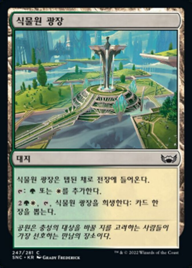 | Rules | Botanical Plaza enters the battlefield tapped. : Add or . , , Sacrifice Botanical Plaza: Draw a card. |