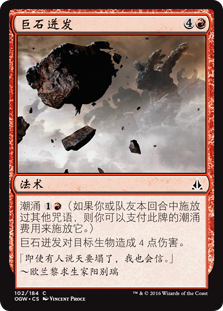 | Rules | Surge (You may cast this spell for its surge cost if you or a teammate has cast another spell this turn.) Boulder Salvo deals 4 damage to target creature. |