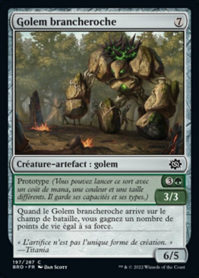 | Rules | Prototype — 3/3 (You may cast this spell with different mana cost, color, and size. It keeps its abilities and types.) When Boulderbranch Golem enters the battlefield, you gain life equal to its power. |