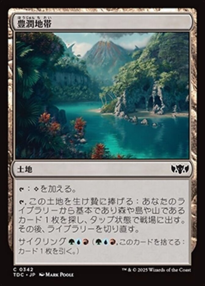 | Rules | : Add . , Sacrifice Bountiful Landscape: Search your library for a basic Forest, Island, or Mountain card, put it onto the battlefield tapped, then shuffle. Cycling (, Discard this card: Draw a card.) |