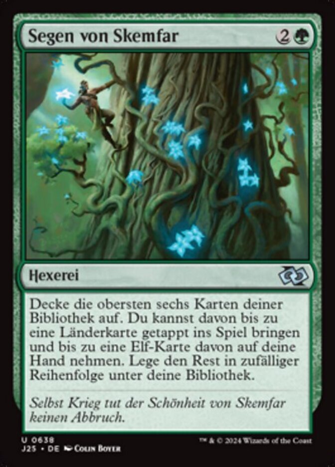 | Rules | Reveal the top six cards of your library. You may put a land card from among them onto the battlefield tapped and an Elf card from among them into your hand. Put the rest on the bottom of your library in a random order. |