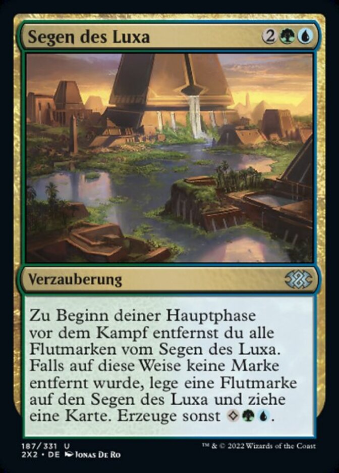 | Rules | At the beginning of your precombat main phase, remove all flood counters from Bounty of the Luxa. If no counters were removed this way, put a flood counter on Bounty of the Luxa and draw a card. Otherwise, add . |