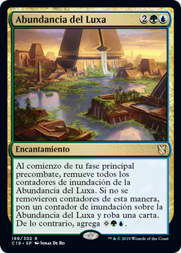 | Rules | At the beginning of your precombat main phase, remove all flood counters from Bounty of the Luxa. If no counters were removed this way, put a flood counter on Bounty of the Luxa and draw a card. Otherwise, add . |