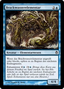 | Rules | When Brackwater Elemental attacks or blocks, sacrifice it at the beginning of the next end step. Unearth (: Return this card from your graveyard to the battlefield. It gains haste. Exile it at the beginning of the next end step or if it would leave the battlefield. Unearth only as a sorcery.) |