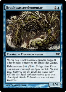 | Rules | When Brackwater Elemental attacks or blocks, sacrifice it at the beginning of the next end step. Unearth (: Return this card from your graveyard to the battlefield. It gains haste. Exile it at the beginning of the next end step or if it would leave the battlefield. Unearth only as a sorcery.) |