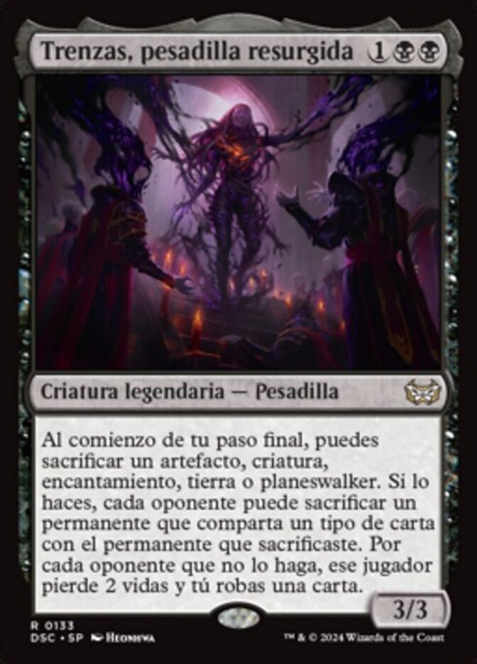 | Rules | At the beginning of your end step, you may sacrifice an artifact, creature, enchantment, land, or planeswalker. If you do, each opponent may sacrifice a permanent that shares a card type with it. For each opponent who doesn't, that player loses 2 life and you draw a card. |