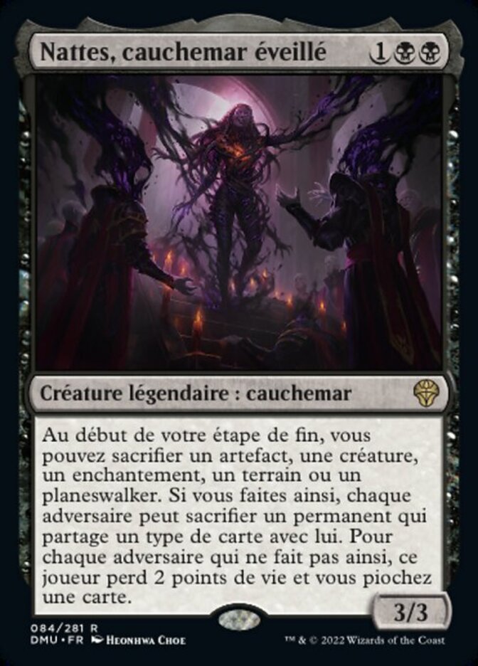 | Rules | At the beginning of your end step, you may sacrifice an artifact, creature, enchantment, land, or planeswalker. If you do, each opponent may sacrifice a permanent that shares a card type with it. For each opponent who doesn't, that player loses 2 life and you draw a card. |
