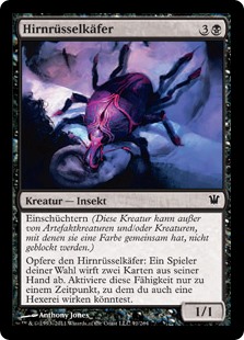 | Rules | Intimidate (This creature can't be blocked except by artifact creatures and/or creatures that share a color with it.) Sacrifice Brain Weevil: Target player discards two cards. Activate only as a sorcery. |