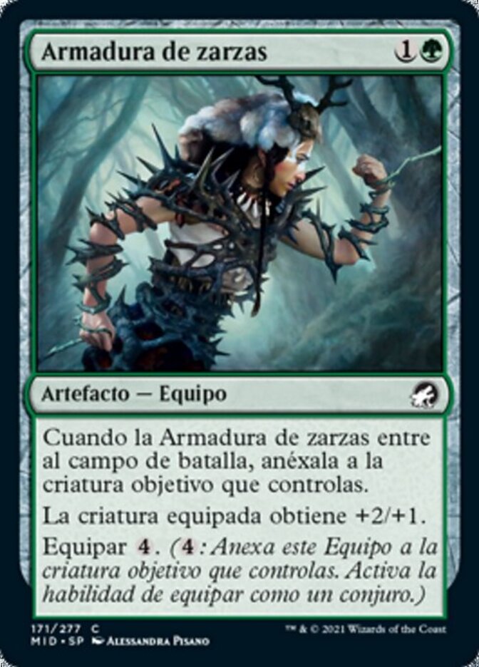 | Rules | When Bramble Armor enters the battlefield, attach it to target creature you control. Equipped creature gets +2/+1. Equip (: Attach to target creature you control. Equip only as a sorcery.) |