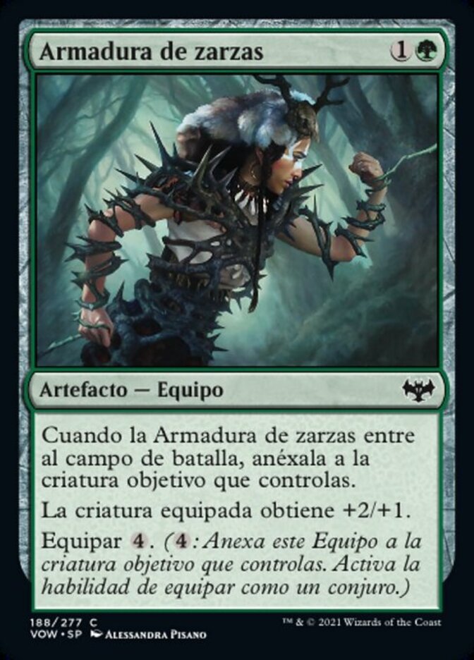 | Rules | When Bramble Armor enters the battlefield, attach it to target creature you control. Equipped creature gets +2/+1. Equip (: Attach to target creature you control. Equip only as a sorcery.) |