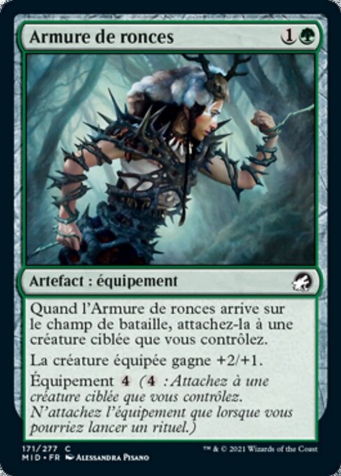 | Rules | When Bramble Armor enters the battlefield, attach it to target creature you control. Equipped creature gets +2/+1. Equip (: Attach to target creature you control. Equip only as a sorcery.) |