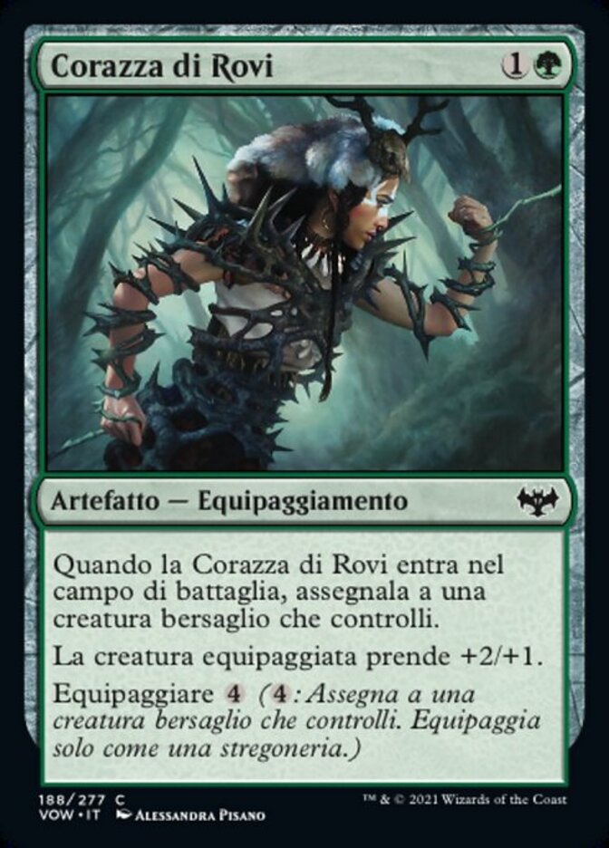 | Rules | When Bramble Armor enters the battlefield, attach it to target creature you control. Equipped creature gets +2/+1. Equip (: Attach to target creature you control. Equip only as a sorcery.) |