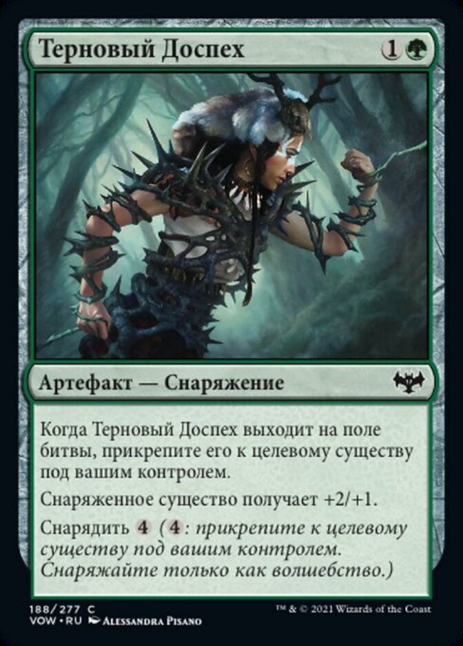 | Rules | When Bramble Armor enters the battlefield, attach it to target creature you control. Equipped creature gets +2/+1. Equip (: Attach to target creature you control. Equip only as a sorcery.) |