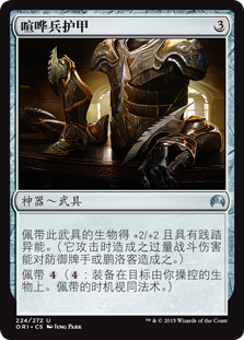 | Rules | Equipped creature gets +2/+2 and has trample. (It can deal excess combat damage to the player or planeswalker it's attacking.) Equip (: Attach to target creature you control. Equip only as a sorcery.) |