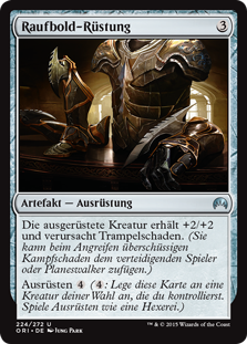 | Rules | Equipped creature gets +2/+2 and has trample. (It can deal excess combat damage to the player or planeswalker it's attacking.) Equip (: Attach to target creature you control. Equip only as a sorcery.) |