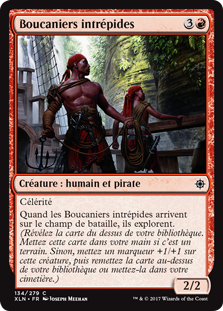 | Rules | Haste When Brazen Buccaneers enters the battlefield, it explores. (Reveal the top card of your library. Put that card into your hand if it's a land. Otherwise, put a +1/+1 counter on this creature, then put the card back or put it into your graveyard.) |