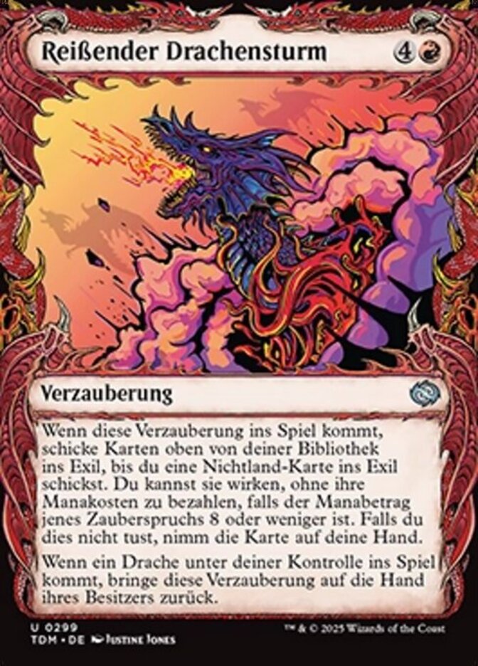 | Rules | When this enchantment enters, exile cards from the top of your library until you exile a nonland card. You may cast it without paying its mana cost if that spell's mana value is 8 or less. If you don't, put that card into your hand. When a Dragon you control enters, return this enchantment to its owner's hand. |