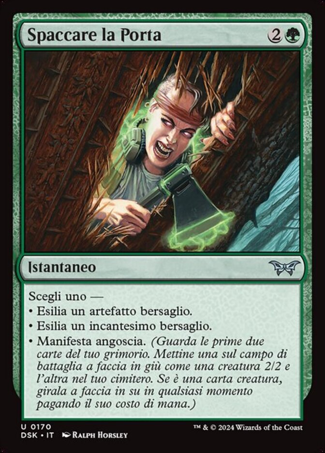 | Rules | Choose one — • Exile target artifact. • Exile target enchantment. • Manifest dread. (Look at the top two cards of your library. Put one onto the battlefield face down as a 2/2 creature and the other into your graveyard. Turn it face up any time for its mana cost if it's a creature card.) |