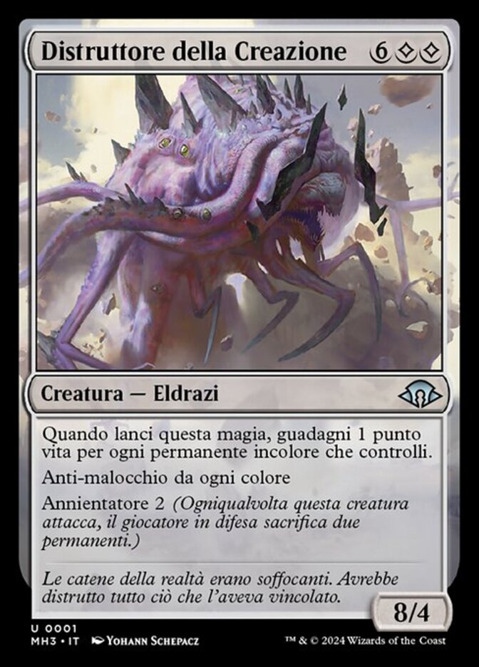 | Rules | When you cast this spell, you gain 1 life for each colorless permanent you control. Hexproof from each color Annihilator 2 (Whenever this creature attacks, defending player sacrifices two permanents.) |