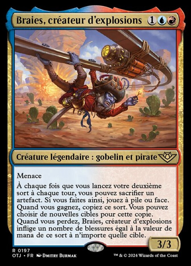 | Rules | Menace Whenever you cast your second spell each turn, you may sacrifice an artifact. If you do, flip a coin. When you win the flip, copy that spell. You may choose new targets for the copy. When you lose the flip, Breeches, the Blastmaker deals damage equal to that spell's mana value to any target. |