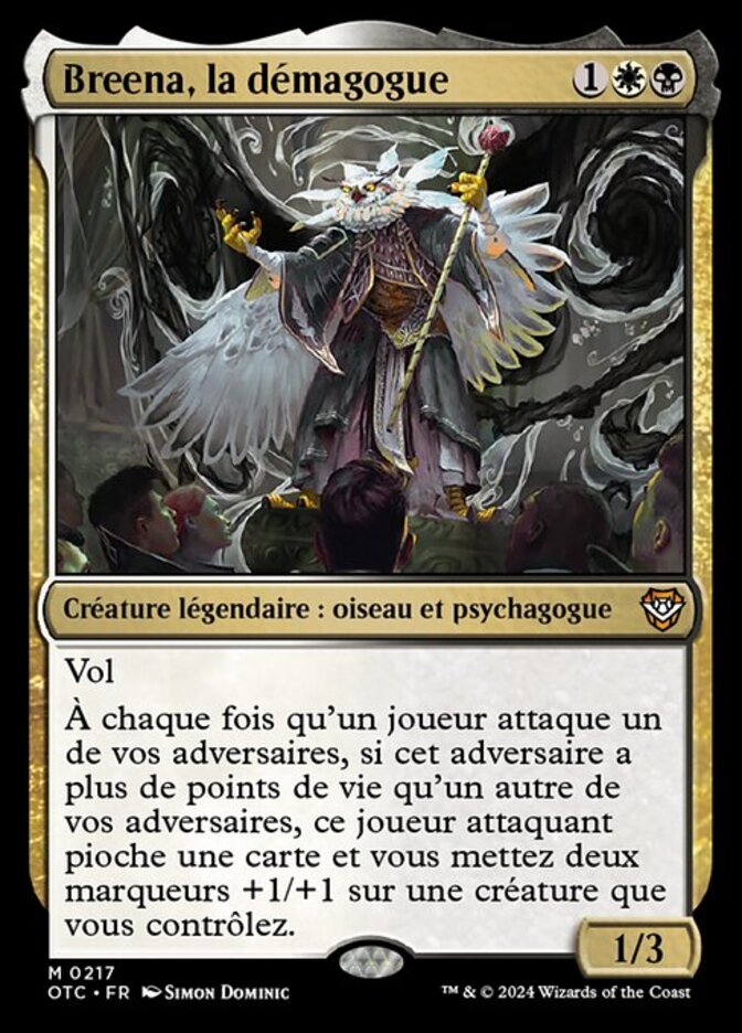 | Rules | Flying Whenever a player attacks one of your opponents, if that opponent has more life than another of your opponents, that attacking player draws a card and you put two +1/+1 counters on a creature you control. |