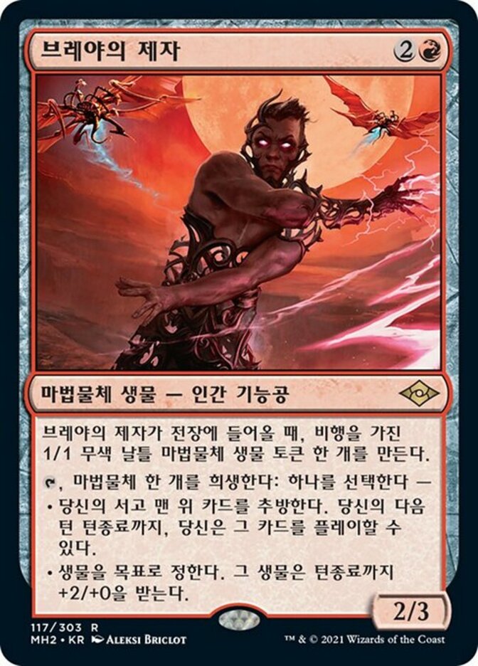 | Rules | When Breya's Apprentice enters the battlefield, create a 1/1 colorless Thopter artifact creature token with flying. , Sacrifice an artifact: Choose one — • Exile the top card of your library. Until the end of your next turn, you may play that card. • Target creature gets +2/+0 until end of turn. |
